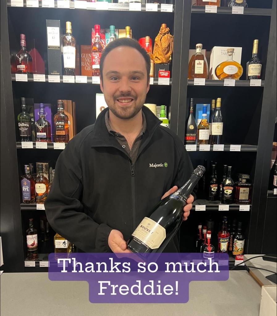 First business I tried was Majestic Wine. I can’t thank Freddie Whitelaw enough for not only taking the time to listen to my request but also for very generously donating a magnum of fizz for our June 22nd fundraiser.