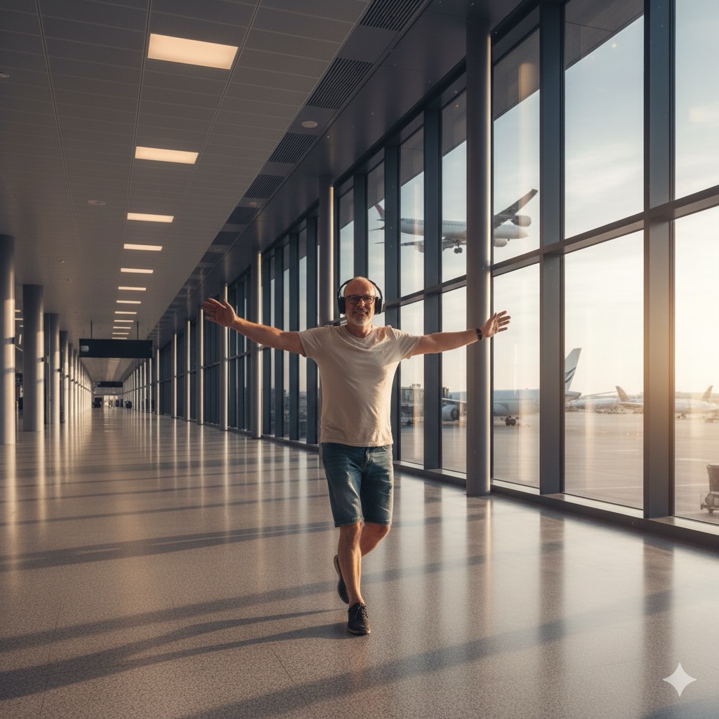 This seems to be my new strategy for getting my body going. On our way home via Atlanta, I started to feel stiff and Parkinsonian at the gate during our 6-hour layover. There weren’t many people around, so I dug my headphones out, whipped on my playlist, and proceeded to recreate that Hugh Grant scene from Love Actually on Gate E17’s concourse for an hour. How not giving a damn what you look like—feeling the fear and doing it anyway—is so uplifting! I was shadow boxing to AC/DC, moshing to Blondie, and pogoing with the Foos up and down the corridor. I was even waving to the Delta pilots and passengers as they taxied past the window. I’m surprised I made it home without getting tasered by the TSA!